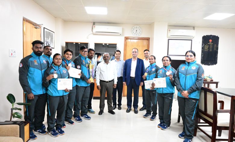 आज दिनांक 26 नवम्बर 2025 को टीम की विजेता महिला खिलाड़ियों ने दक्षिण पूर्व मध्य रेलवे के महाप्रबंधक कार्यालय पहुँचकर महाप्रबंधक श्री तरुण प्रकाश से सौजन्य भेंट की। महाप्रबंधक ने सभी खिलाड़ियों को उनके उत्कृष्ट प्रदर्शन पर हार्दिक बधाई दी तथा उनके उज्ज्वल भविष्य की शुभकामनाएँ प्रेषित करते हुए कहा कि खिलाड़ियों का यह प्रदर्शन रेलवे के लिए प्रेरणास्रोत है और वे भविष्य में भी इसी उत्साह एवं समर्पण के साथ नई ऊँचाइयाँ प्राप्त करेंगी ।