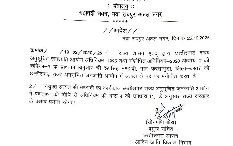रूप सिंह मंडावी बने अनुसूचित जनजाति आयोग के अध्यक्ष
